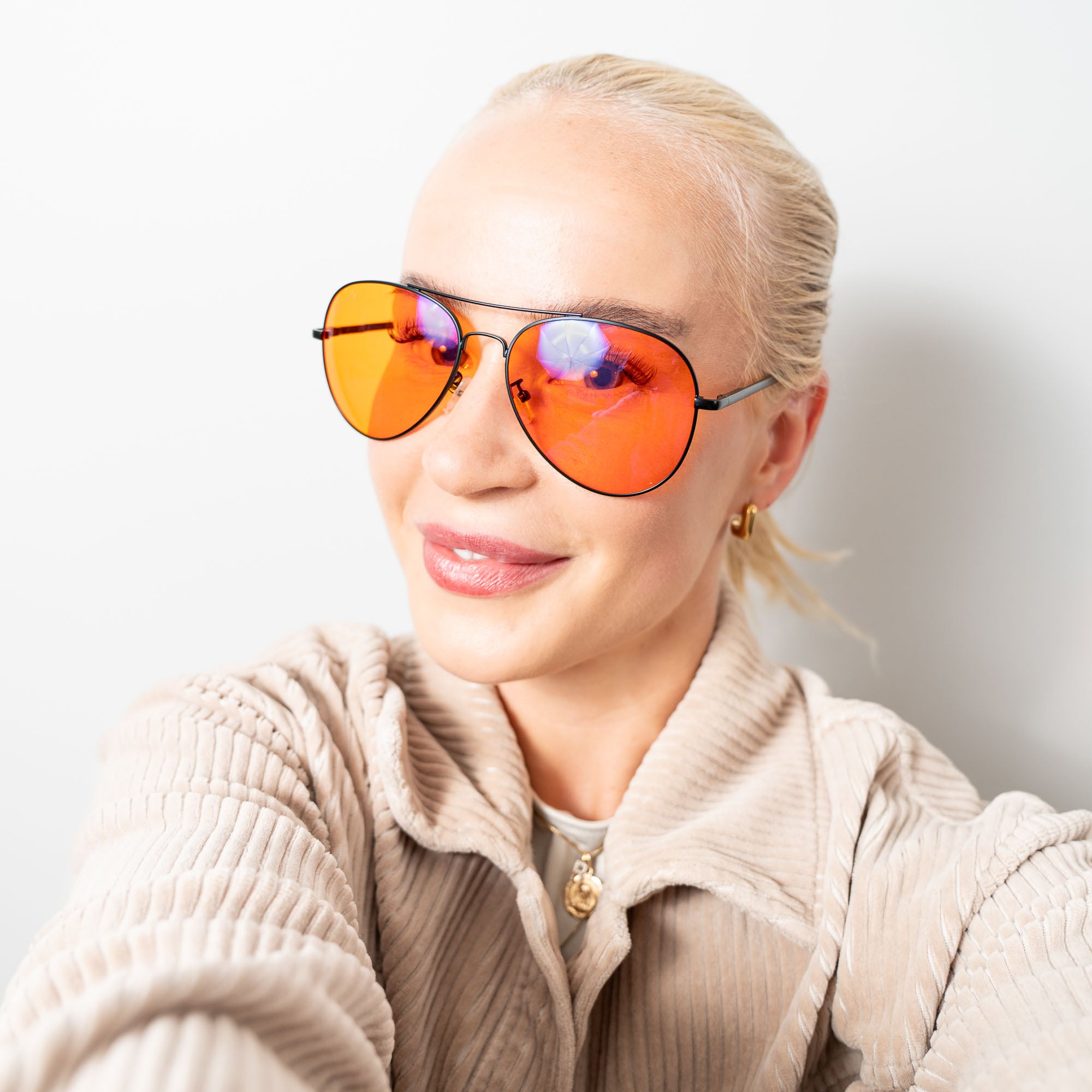 The Evening Lens has a warm orange tint that filters out most blue and green light while allowing just enough through to keep you alert for conversation, work, or entertainment. These lenses are designed to help you unwind while protecting your eyes from harmful exposure.