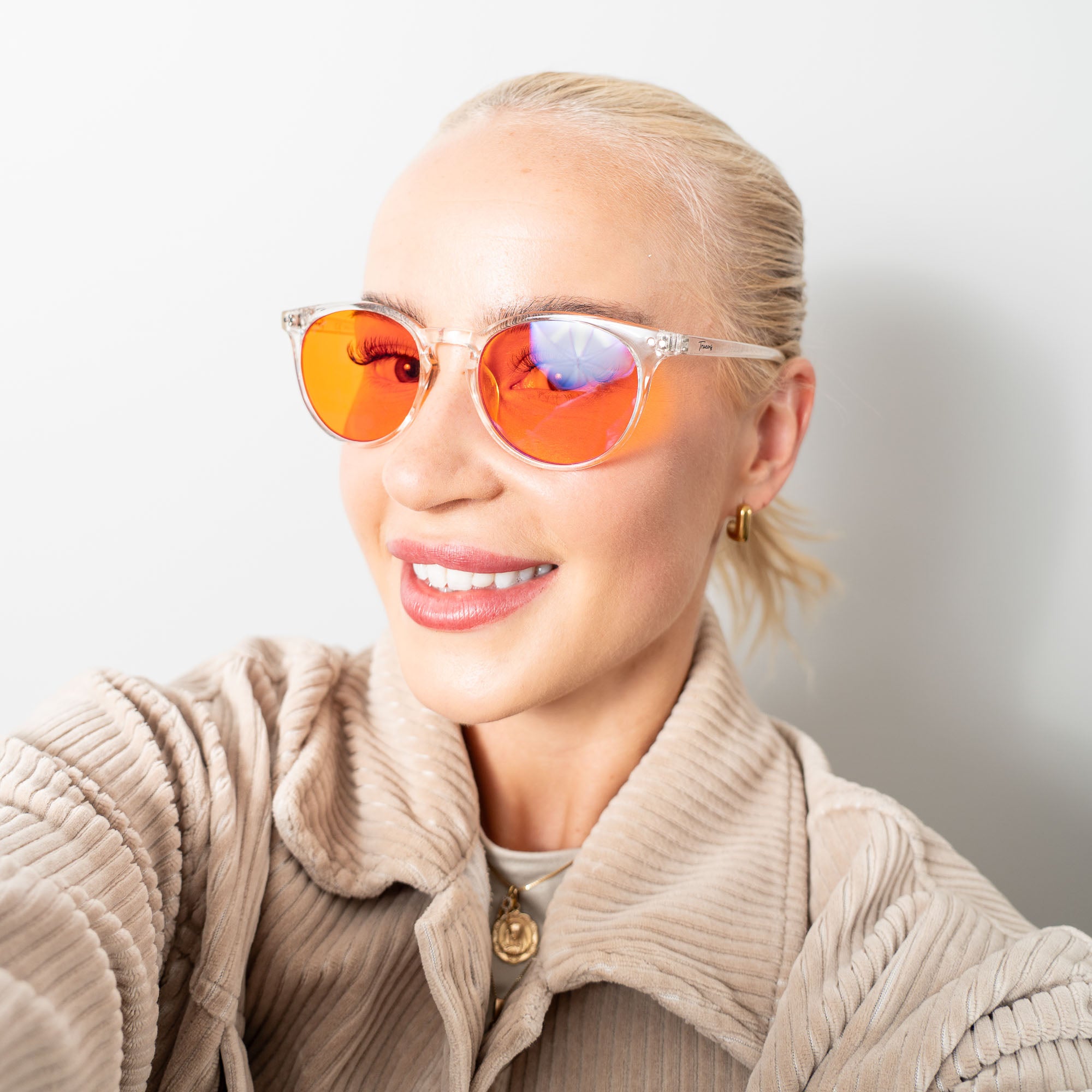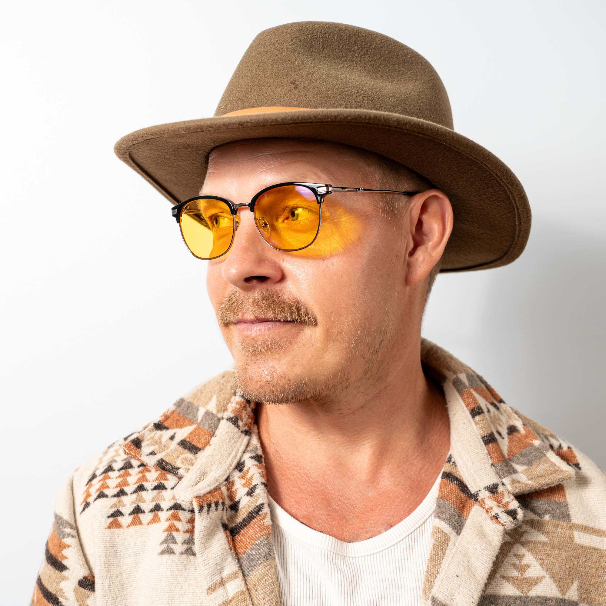 For evening events and outings - The Evening Lens has a warm orange tint that filters out most blue and green light while allowing just enough through to keep you alert for conversation, work, or entertainment.
